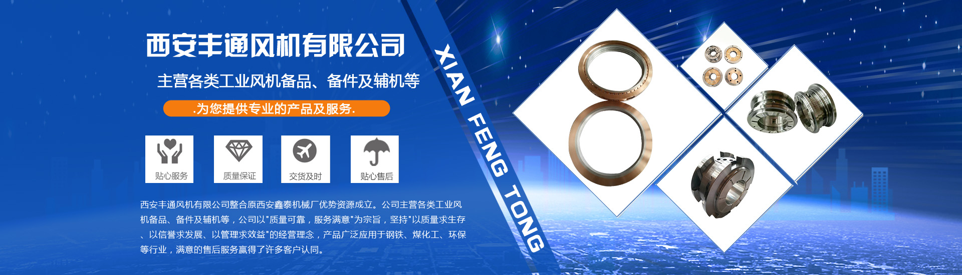 公司主营产品包括风机转子、滑动轴承、密封、联轴器等;风机配套润滑油站过滤器、冷却器;风机配套增速器齿轮对等配件;轴流压缩机伺服马达等配套产品;工业自动化系统设计制造;轴流压缩机安装、调试检修等技术服务。